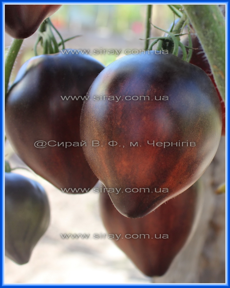 Кущ заввишки до 1.5м. Плід – привабливий червоно-рожевий з темносинім антоціаном на плечиках, серцевидний, масою 150-200г і до 300г. Смак відмінний солодкий з легкою кислинкою та приємним фруктовим присмаком.