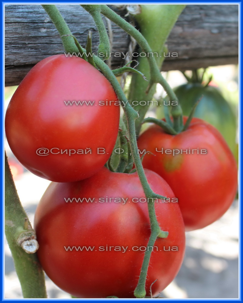 Кущ заввишки 1.5 – 1.7м. Плід – червоний, овальний, масою 150 – 250г. Ростуть кистями. М’якоть щільна, м’ясиста. Майже готова як кетчуп і паста. Дуже смачна, особливо в салатах.