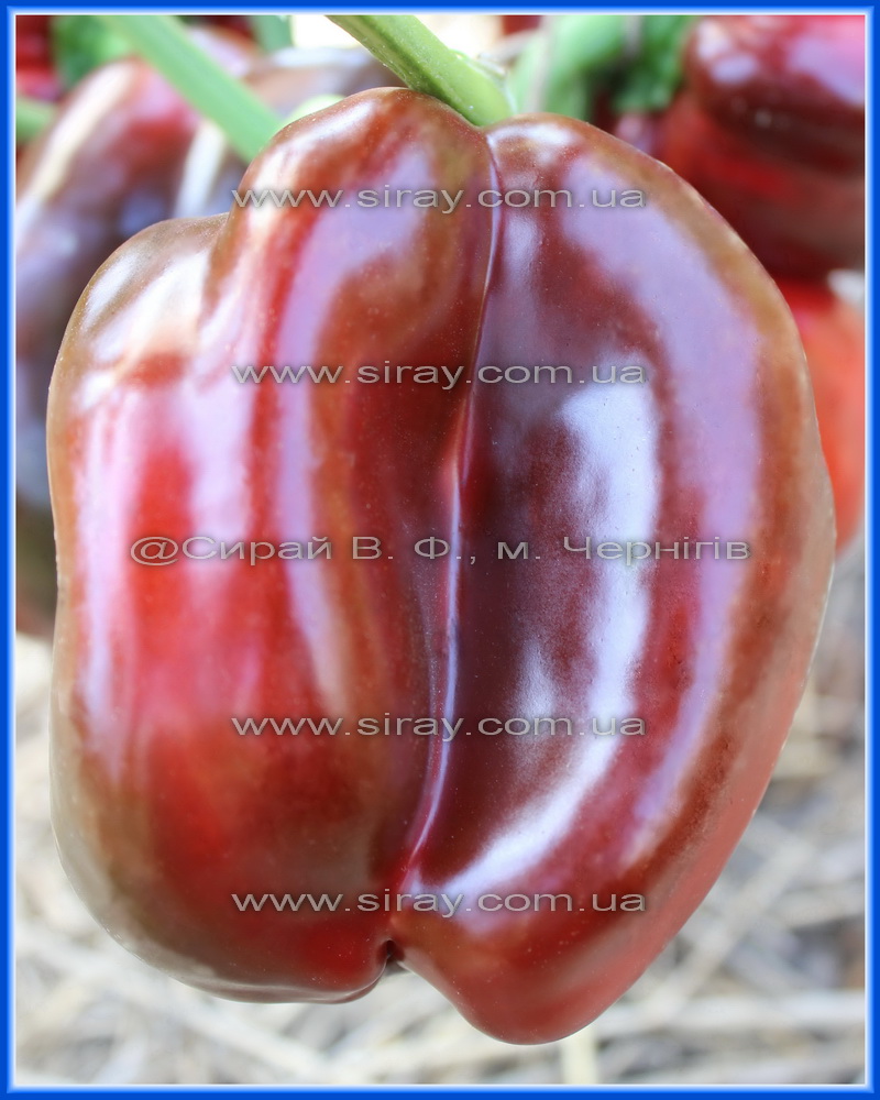 Кущ заввишки 60 – 70см. Плід – червоний, кубовидний, масою 150 – 200г. Красива традиційна форма і розмір. Товсті, соковиті стінки. Приємний смак м’якоті. Достатньо високий врожай.