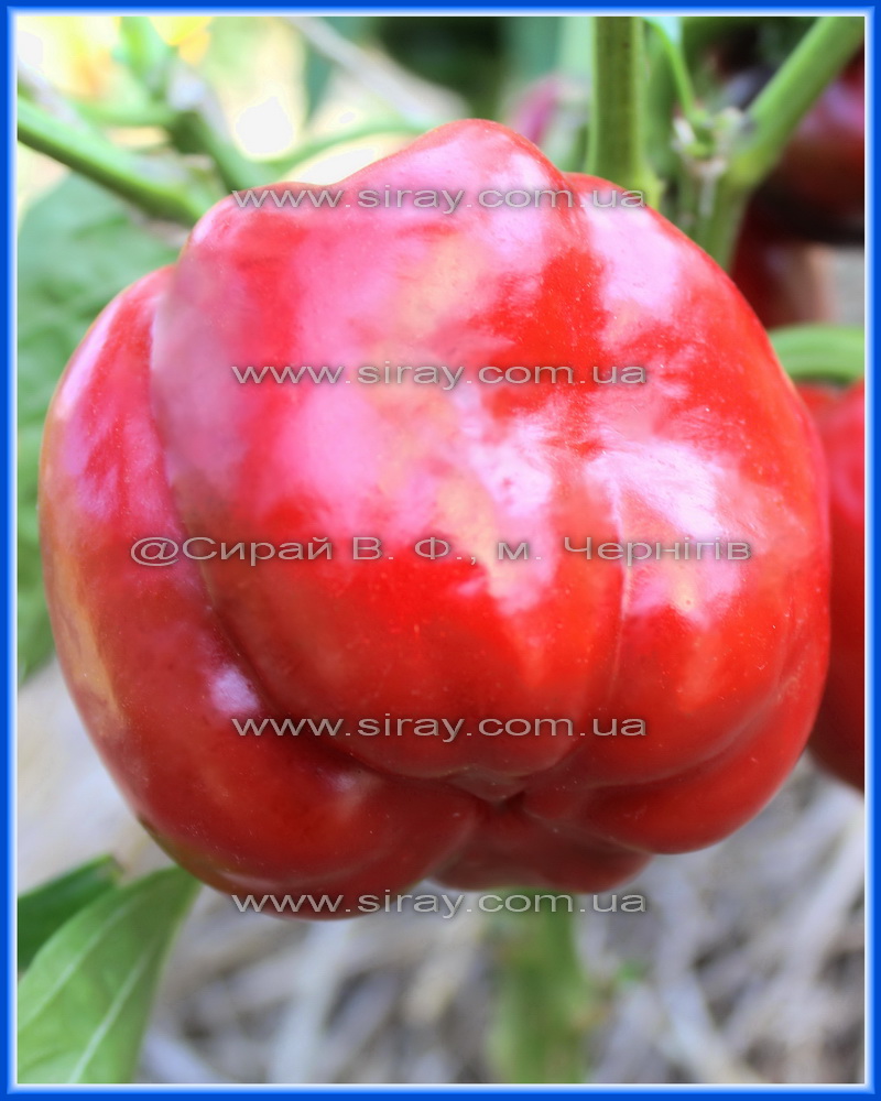 Кущ заввишки 60 – 70см. Плід – від темно-зеленого до темно-червоного кольору, кубовидний, масою 150 – 200г. Плоди товстостінні, з насиченим смаком, соковиті, солодкі, запашні. Для споживання у свіжому вигляді і кулінарії.