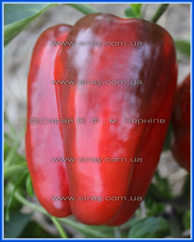 Кущ заввишки 60 – 70см. Плід – насичено-червоний, форма у вигляді зрізаної піраміди, масою 150 – 250г. Рослини цього перцю зав’язують численні плоди відмінного м’якого смаку з яблучним ароматом. Стінки плодів дуже товсті. Дуже добре підходять для салатів, смаження, сушіння і особливо начинки. Для фарширування краще використовувати зелений. Сорт володіє стійкістю до низьких температур і нестачі світла.